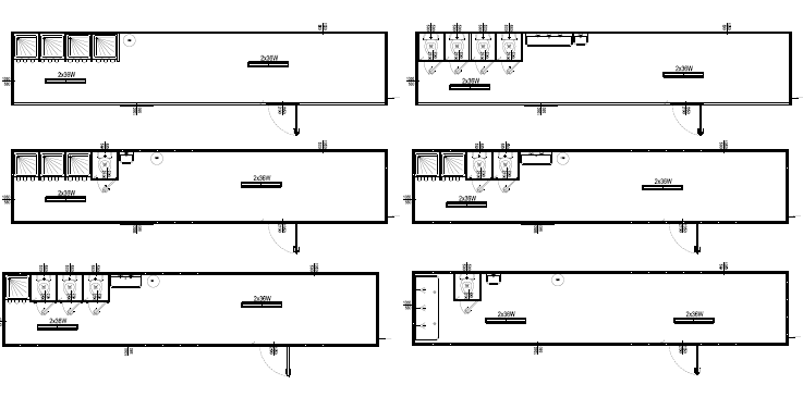monoblocco sanitario con 6 vani sanitari (Allo stesso Prezzo WC / Doccia) , lunghezza da 6 a 12 metri